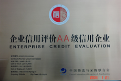 2008年元月9日,我公司被中國物流與采購聯(lián)合會(huì)授予“AA級(jí)信用企業(yè)”稱號(hào)。