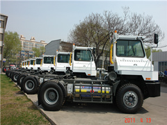 2011年4月12日,我公司購(gòu)置的9臺(tái)重汽鋼廠轉(zhuǎn)運(yùn)牽引車(chē)(LNG燃料車(chē))到廠,即將投入使用。在全公司大范圍的使用LNG燃料汽車(chē),結(jié)合甩掛牽引技術(shù)的推廣應(yīng)用,將顯著提高車(chē)輛利用效率,有效降低車(chē)輛運(yùn)營(yíng)成本。