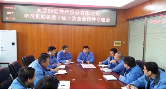 12月11日,按照尖草坪經(jīng)信局黨委的要求,公司黨委召開(kāi)各分公司和各部室負(fù)責(zé)人專題會(huì)議,傳達(dá)學(xué)習(xí)貫徹省委十屆七次全會(huì)精神。會(huì)議傳達(dá)了《中共山西省委關(guān)于制定國(guó)民經(jīng)濟(jì)和社會(huì)發(fā)展第十三個(gè)五年規(guī)劃的建議》、省委書記王儒林同志的重要講話精神以及對(duì)《“十三五”規(guī)劃建議》的說(shuō)明。 公司要求把學(xué)習(xí)貫徹省委十屆七次全會(huì)精神作為當(dāng)前一項(xiàng)重要政治任務(wù),與學(xué)習(xí)貫徹十八屆五中全會(huì)精神結(jié)合起來(lái),與學(xué)習(xí)貫徹習(xí)近平總書記系列重要講話精神結(jié)合起來(lái),與“三嚴(yán)三實(shí)”專題教育結(jié)合起來(lái),精心組織實(shí)施,迅速掀起學(xué)習(xí)宣傳貫徹的熱潮,要認(rèn)清形勢(shì)、搶抓機(jī)遇,知難而進(jìn),進(jìn)一步明晰鋼運(yùn)物流發(fā)展思路,加快企業(yè)發(fā)展步伐。